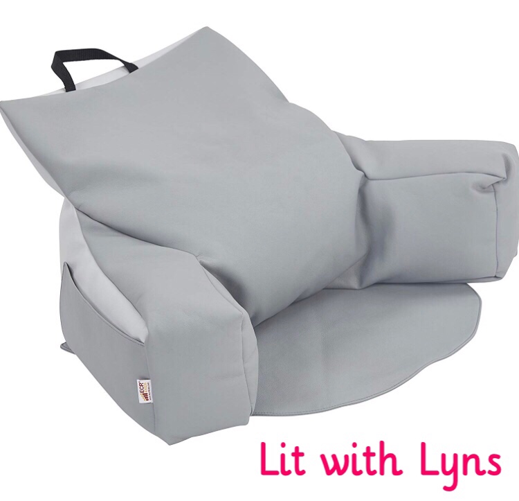 I’ve begun gradually moving towards more flexible seating in my classroom. I started with 4-5 bean bags which students could sit on during reading time. Then I discovered that there was also an actual bean bag pillow chair with pockets on the side!!! It also has a hook on the back that so that it can be hung up using a 3M hook when not being used. Students love it, and I LOVE using this as an incentive for good behavior, for the student that wins our weekly warm-up review game, etc.