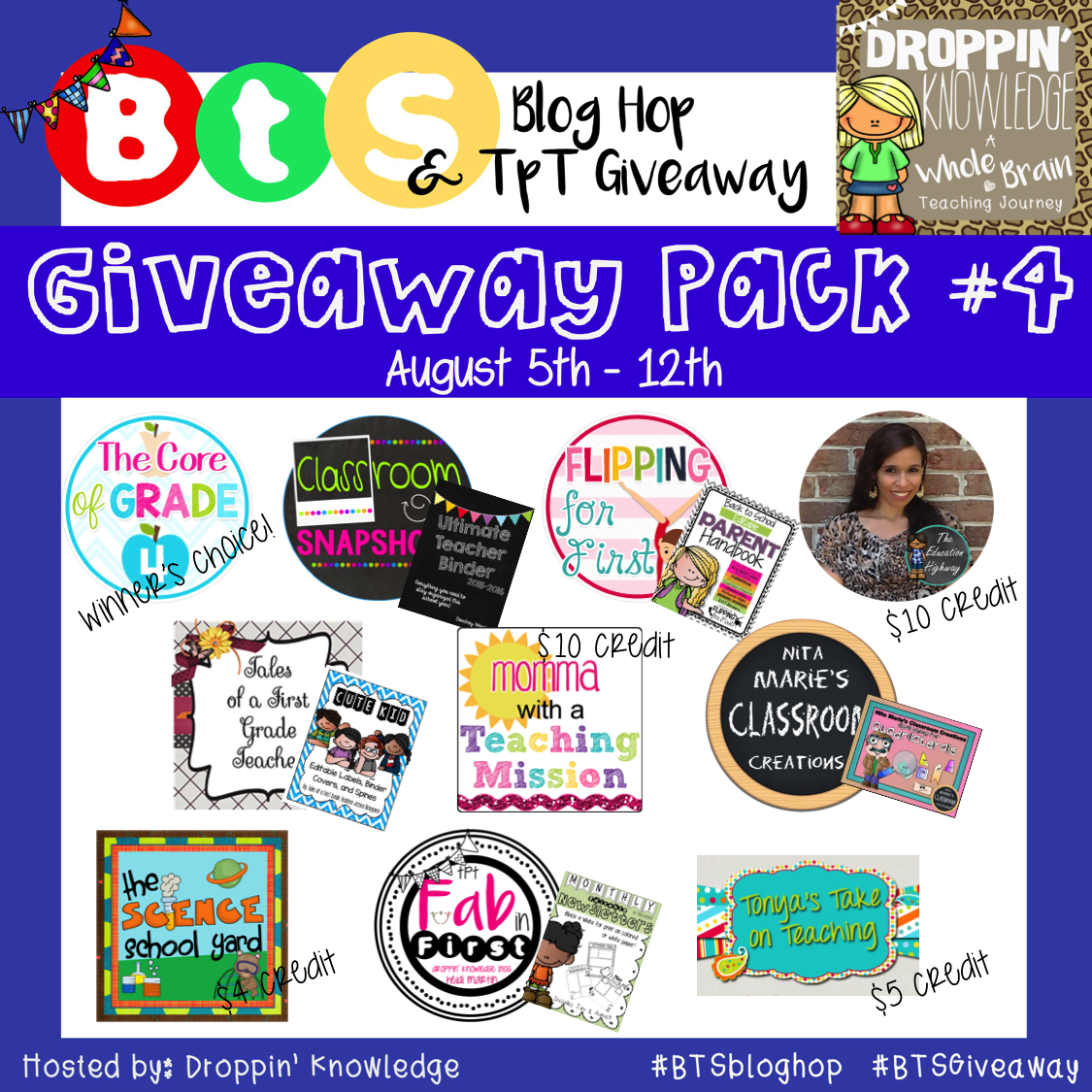 The 2nd giveaway is hosted by Heidi from Droppin’ Knowledge and will run from Aug. 5th-12th. This giveaway also has TONS of teacher/authors who have donated their awesome back to school products, and you can enter each of the giveaway bundles in the rafflecoptors at the end of this post. To give you an idea of all the different items that are included, take a look at the pics below.