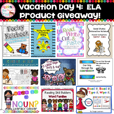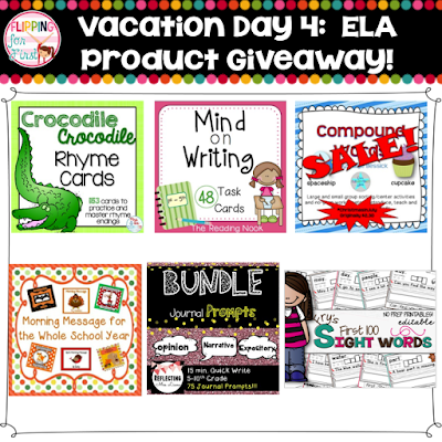 This week I’m so excited to be a part of 2 different giveaways! The first is being hosted by  Flipping for First and a ton of other sellers for a giveaway of over $500 in products!!!  Each day between Monday, July 21 and Friday, July 24th you will have the chance to win products in the following areas:  Monday-Back to School Activities, Tuesday-Behavior Management, Wednesday-Math Activities, Thursday- E/LA Activities, and Friday- store giveaways!
