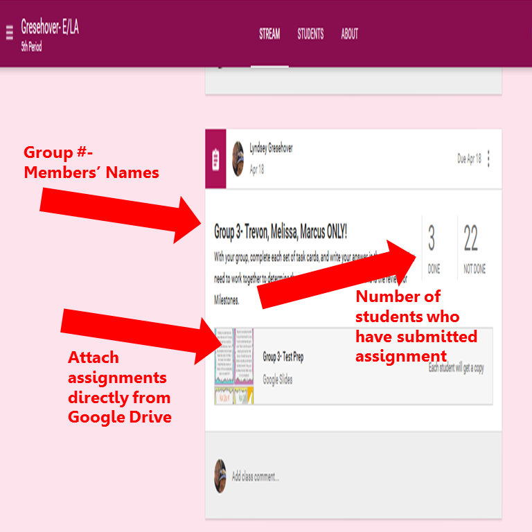 One of their favorite digital activities that we did was the end of the year review task cards that they did in groups. With Google Classroom, there isn’t a way to assign particular students a specific assignment without everyone seeing it in their ‘stream.’ This meant that I couldn’t assign each group a different assignment, without it coming up as an assignment that was due for each student in the class. The way I worked around this was to assign each student to a specific group, and on the assignment title line, I would say the group #, as well as the members’ names that were in this particular group. That way, students knew that if their name wasn’t listed, they didn’t have to turn this assignment in. That also allowed them to see who their other group members were. Once they got into groups, they chose a group leader, who then got all of their group members’ emails and added them as collaborators for the group assignment. This allowed them to work on the activity at the same time, and they could see what each other was writing. If they didn’t agree on the answer of one of the members, they can post a comment directly onto the page, in order for them to discuss this. This also is helpful if you want to prevent students from getting loud or sharing answers that other students can hear.