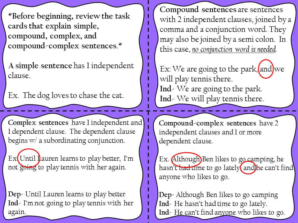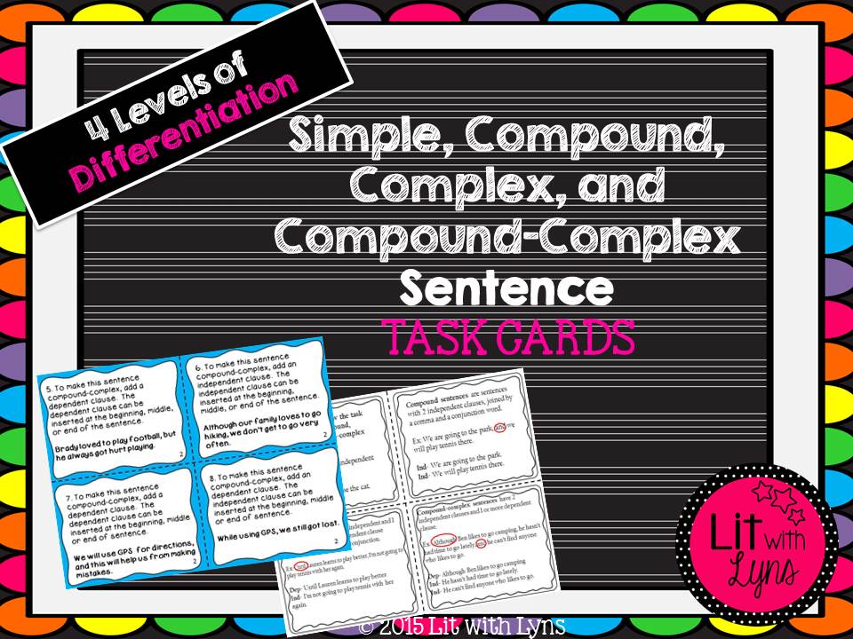 The product I have donated for the giveaway is my Compound, Complex, and Compound-Complex Task Cards. Teaching students to vary sentence structure is a requirement of the Common Core State Standards; however, it’s often not an easy skill for students