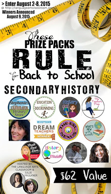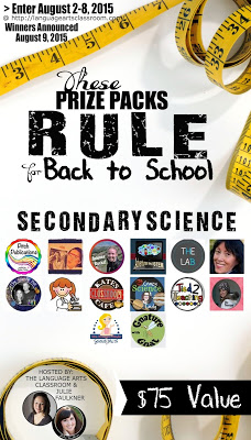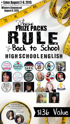 I’m so excited to be a part of another great TPT Back to School Giveaway!!!  I have linked up with the Language Arts Classroom and Julie Faulkner, as well as over 100 TPT secondary teacher/authors from multiple subject areas…so this is going to be BIG!  Make sure to enter between Sunday, Aug. 2nd- Saturday, Aug. 8th by going to the Language Arts Classroom Blog.  The winners will be announced on Sunday, Aug. 9th!  While you’re at it, stop by the other blogs who have linked up, and check out their back to school teaching tips and resources.  Take a look below at all the prizes and amazing teacher/authors who are a part of this!  Thanks so much for stopping by and good luck!!!